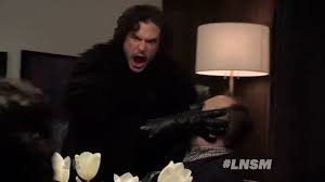 I laugh out loud every time I think of it, yet something about it unsettles me. I admit to being in love with Jon Snow and while I hate to see him ridiculed I don’t want to whip out my sword and decapitate Seth Meyers for doing it. It’s not often I’ve had such a good belly laugh.