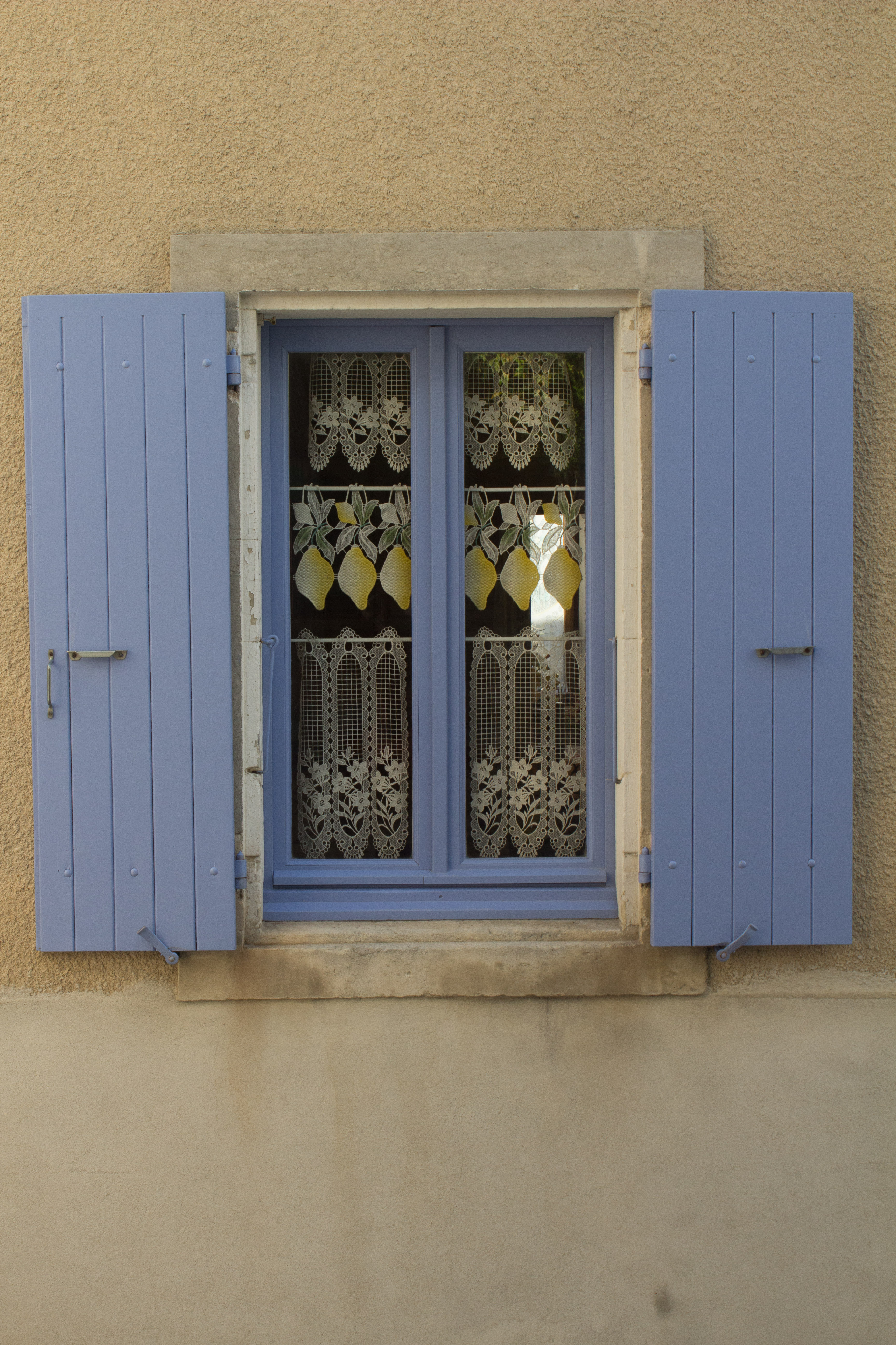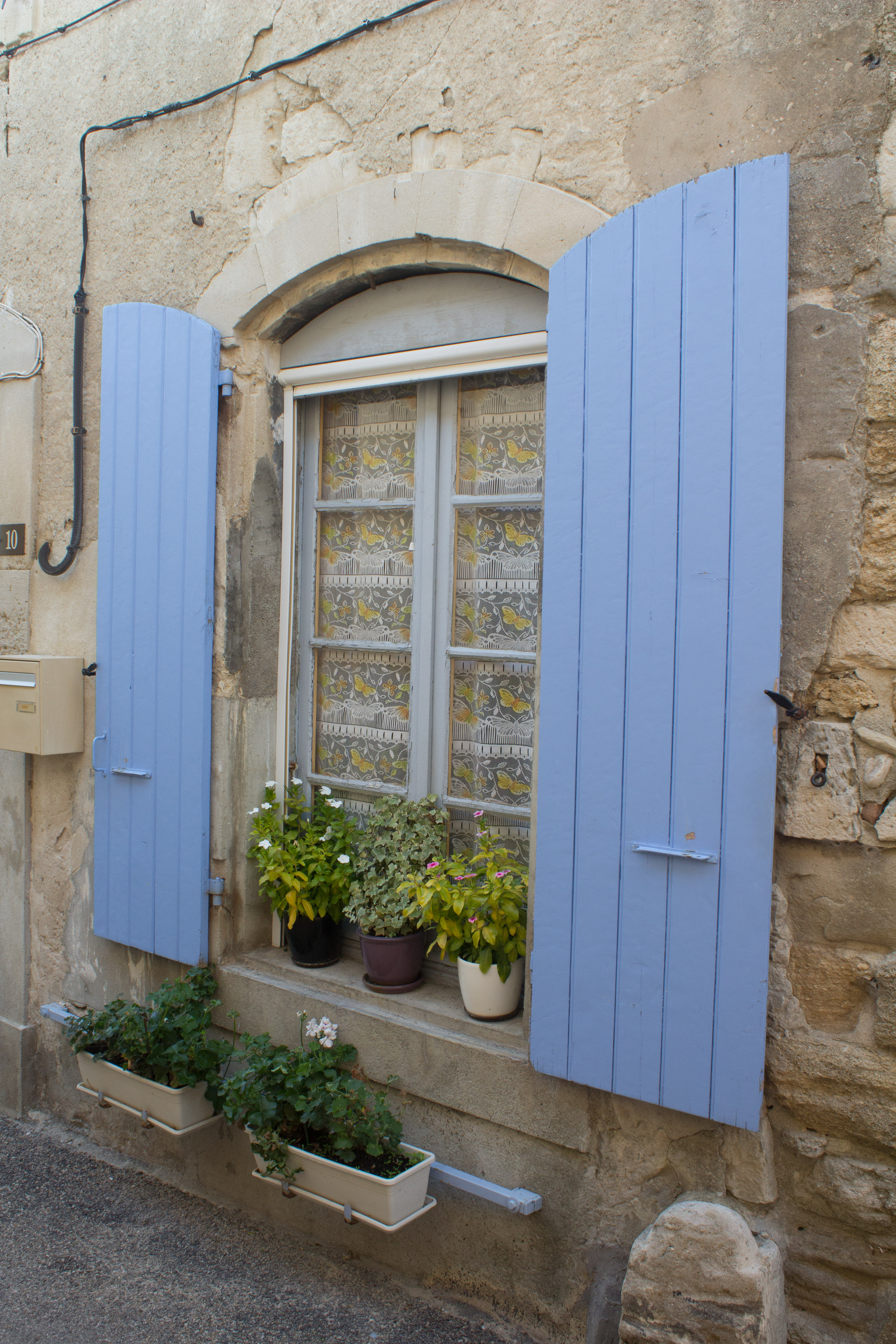 Our house, like most of the other houses in Menerbes, is right on the street. When I’m in the lounge room I can hear anyone walk by. The bottom panes of our front windows are covered in opaque adhesive paper for privacy. There are also shutters we can close on the inside.