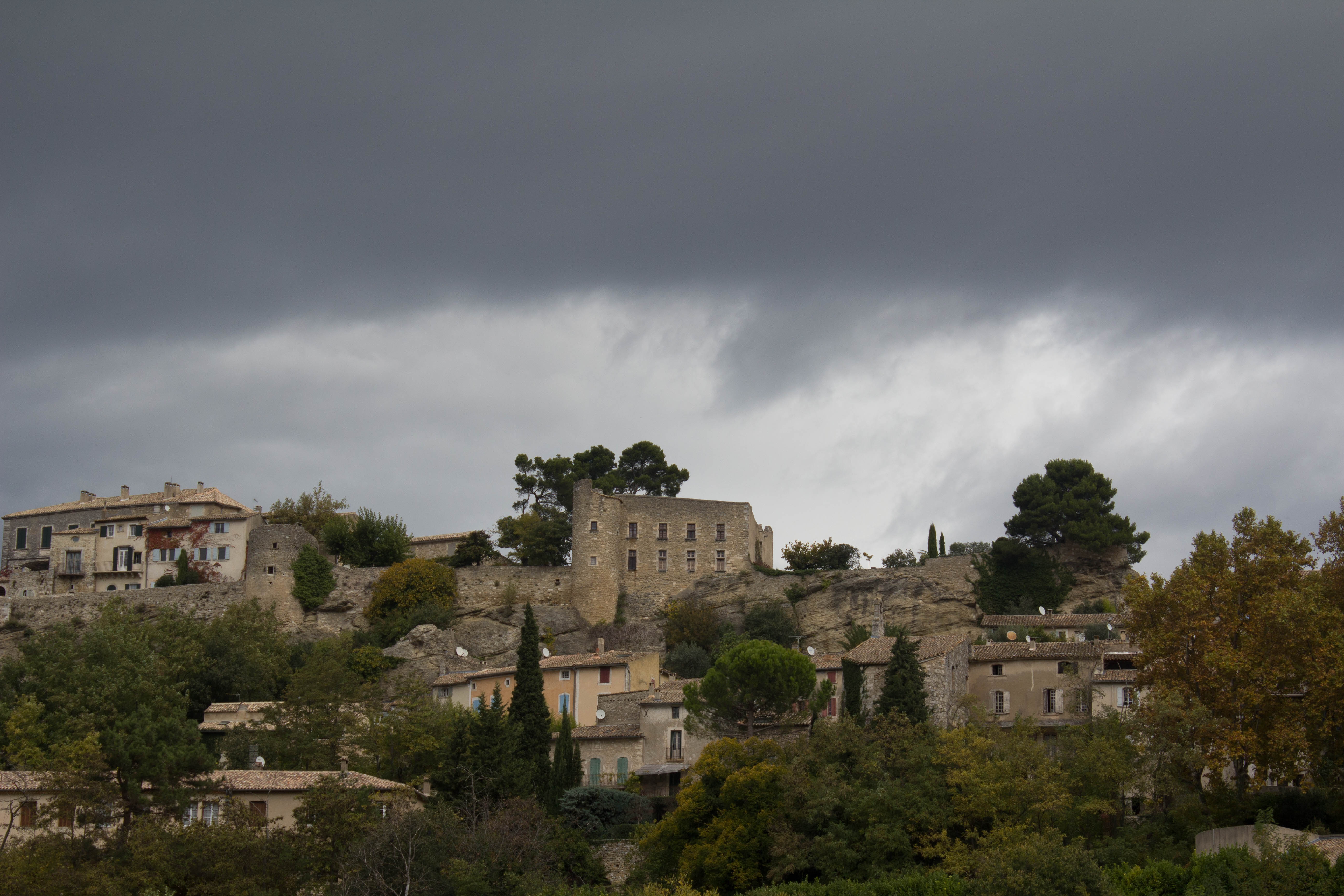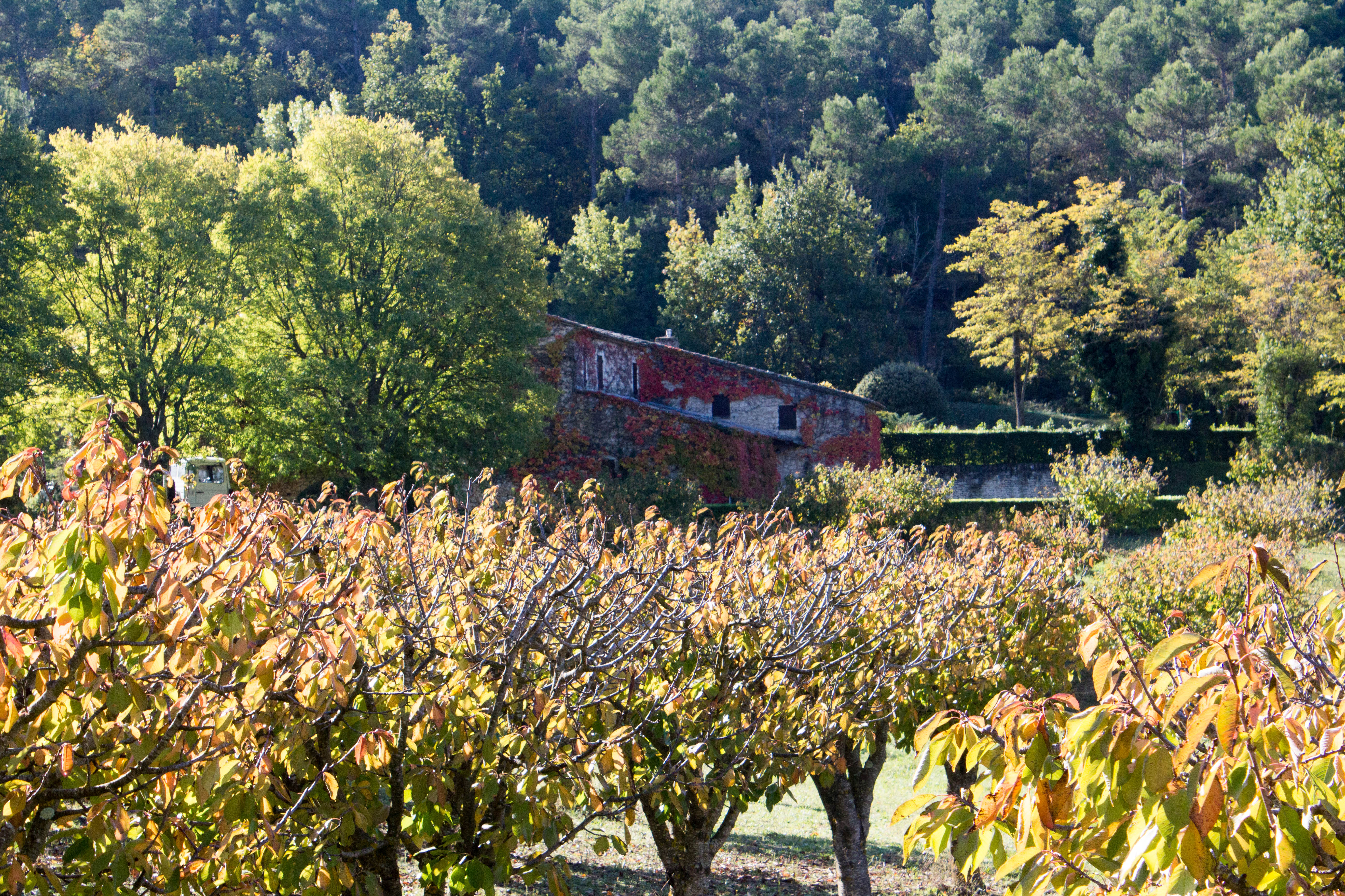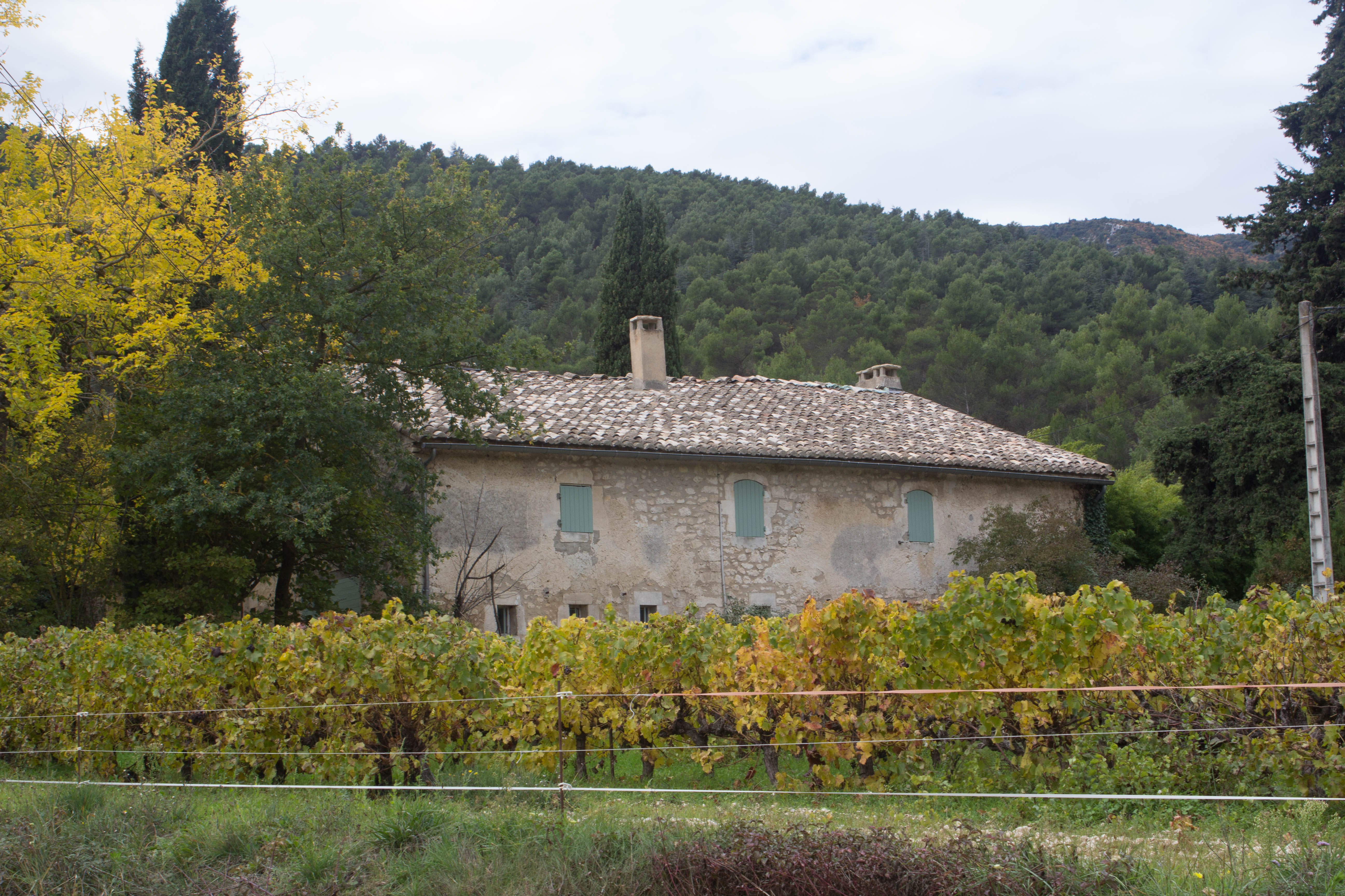 The morning started with an overcast sky and clear light. There was no mist in the Luberon and the overexposured sky was bought down a stop or two to grey. Daylight saving has ended. The sun and I now got up at a reasonable hour.