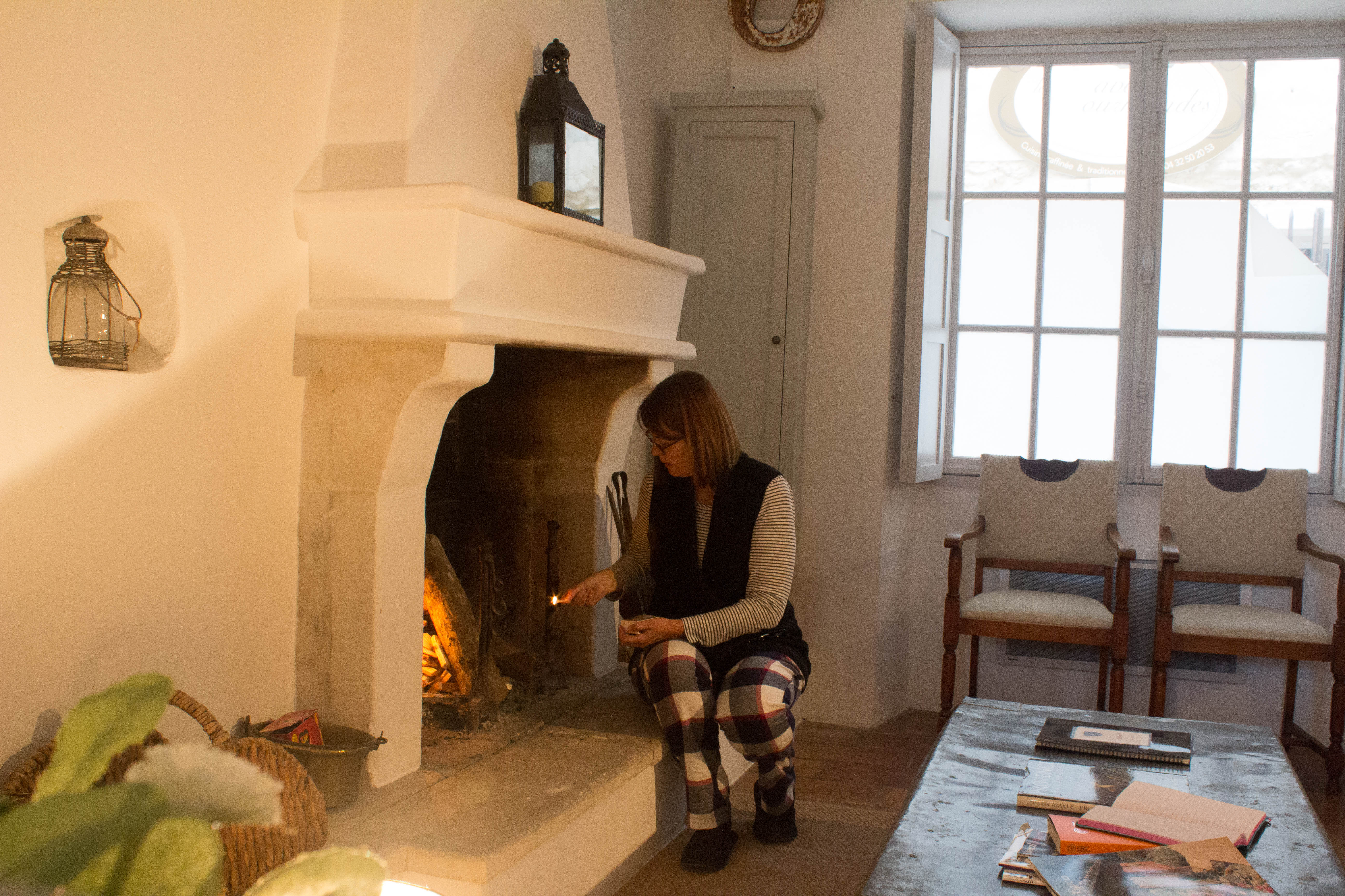 So I put on my loose pyjamas – I’m grateful for the reminder to get back into them, Sue – and light the fire.