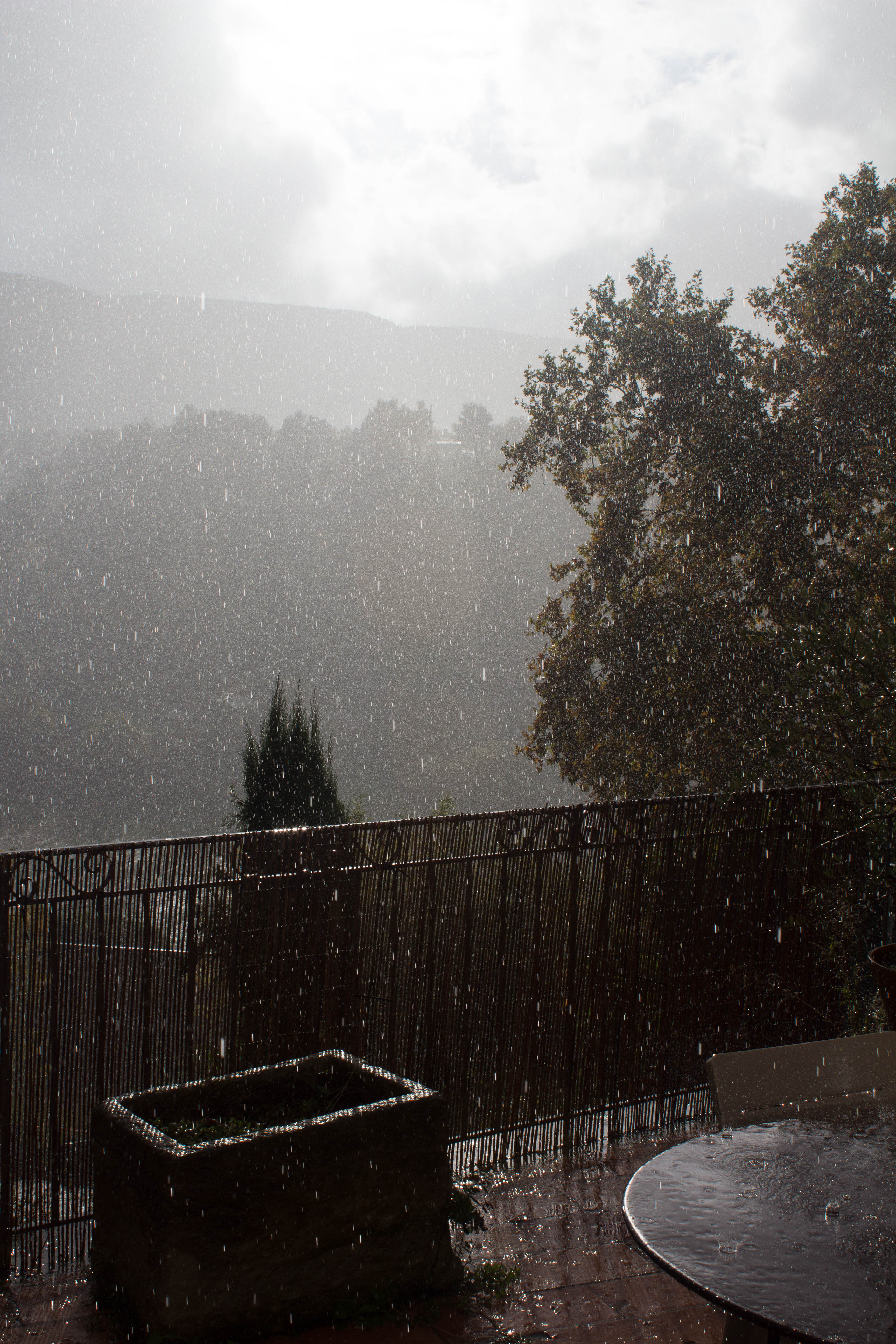 If you’re living a dream, is it supposed to storm? With no lightning, just thunder that goes on for so long you wonder if Thor’s record got stuck? And rain clouds you’ve been keeping an eye on sneak down off the Luberon Mountains when you’re not looking and cause a deluge.