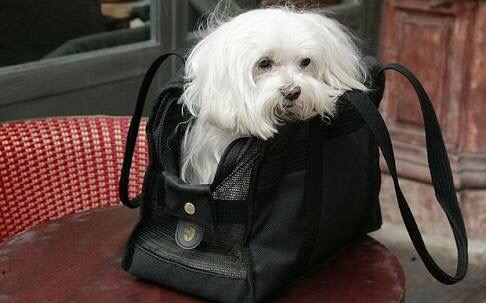 A white fluffy ball of a canine sat next to us last night at dinner in the local grill. It came in its own aqua Birken handbag.