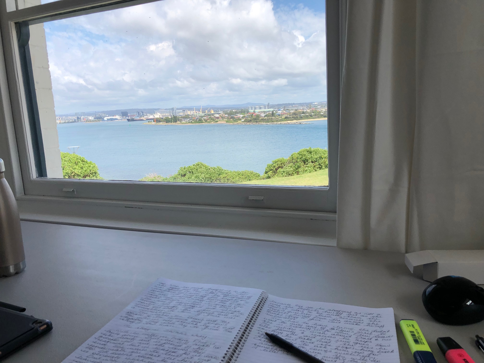 I started writing. From my desk I saw the dark clouds clear and I kept writing. The air was still and warm, and the only sounds were the waves breaking on the beach below, faint guitars, and the occasional F35 from Williamtown Air Base. I continued to write.